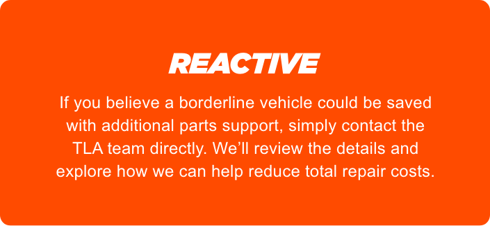 Through the TLA Programme, we work closely with repairers to make borderline repairs financially viable, without compromising on quality or safety.